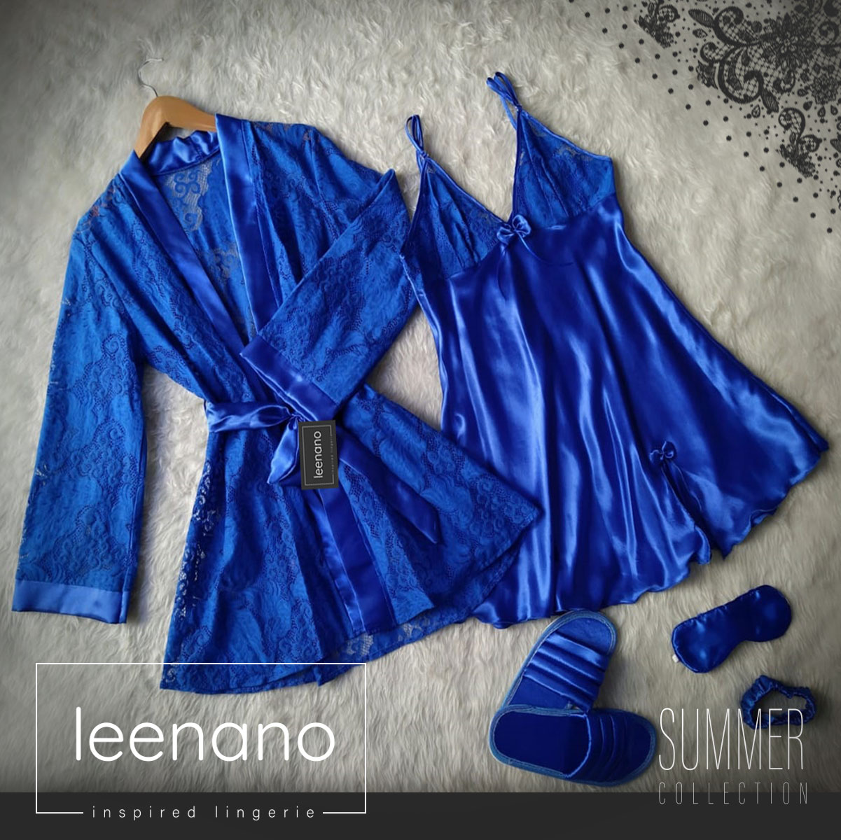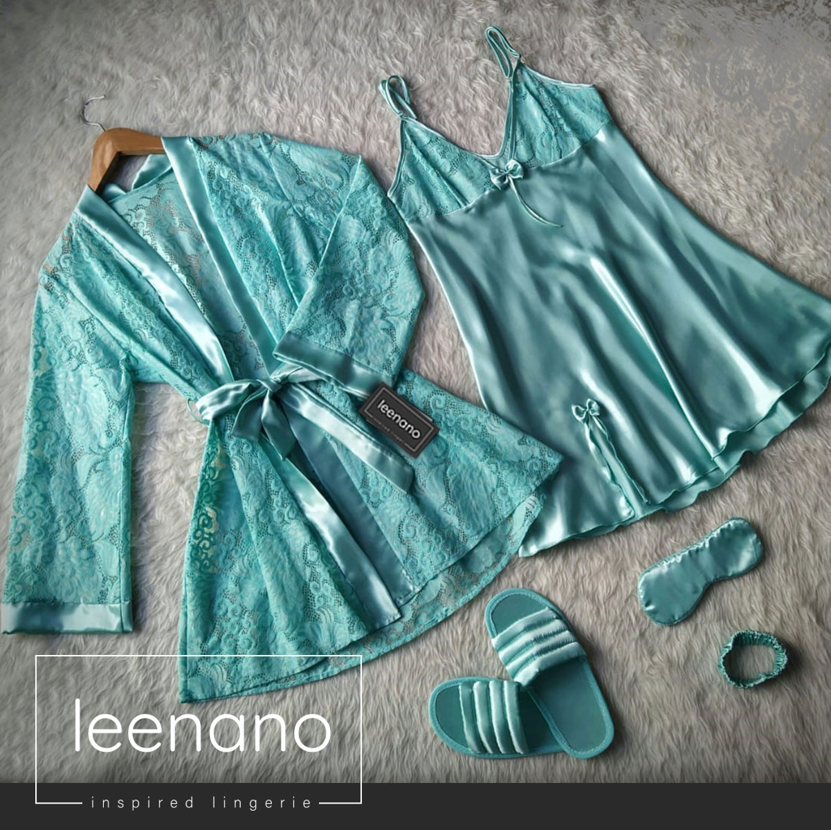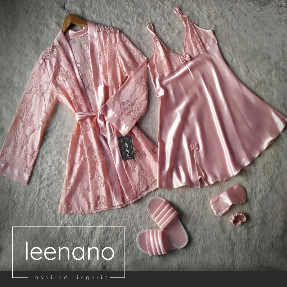This luxury Robe Set is crafted with a sumptuous satin finish and features a beautiful lace inside, padded cup satin with trim lace, and adjustable straps for a custom comfortable fit , and sliper, Hair clip with sleeping glasses. Perfect for lounging in style.
